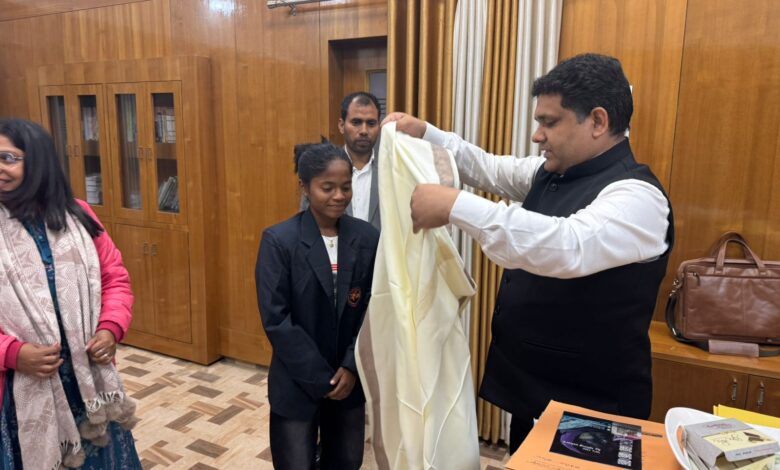 राष्ट्रपति पुरस्कार से सम्मानित फुटबॉल खिलाड़ी अनुष्का कुमारी को हजारीबाग उपायुक्त द्वारा किया गया सम्मानित।