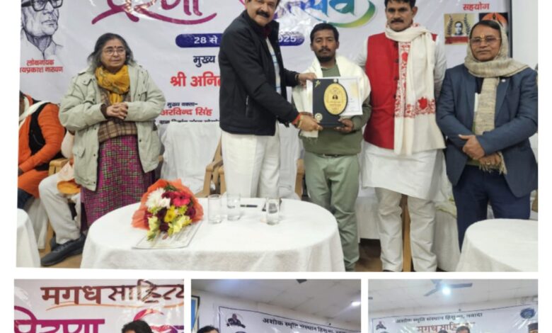 बिहार में आयोजित मगध साहित्य प्रेरणा उत्सव -2025 में असम के हिंदी सेवी संतोष कुमार महतो को रामरतन प्रसाद सिंह “रत्नाकर “स्मृति सम्मान से पुरस्कृत