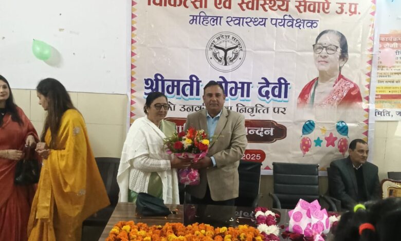 लोनी सामुदायिक स्वास्थ्य केंद्र में एलएचवी श्रीमती शोभा देवी को दी गई भावभीनी विदाई