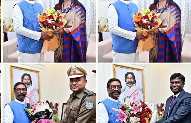 रांची। सीएम हेमन्त सोरेन से आज कांके रोड रांची स्थित मुख्यमंत्री आवासीय कार्यालय में सांसद, राज्य सभा श्रीमती महुआ माजी, अपर मुख्य सचिव गृह, कारा एवं आपदा प्रबंधन विभाग श्रीमती वंदना दादेल, अपर मुख्य सचिव पेयजल एवं स्वच्छता विभाग मस्त राम मीणा, राज्य निर्वाचन आयुक्त श्रीमती अलका तिवारी, सचिव वित्त विभाग प्रशांत कुमार, सदस्य राजस्व पर्षद राजीव रंजन, अभियान निदेशक राष्ट्रीय स्वास्थ्य मिशन छवि रंजन, प्रबंध निदेशक जियाडा वरुण रंजन, निदेशक नगरीय प्रशासक, नगर विकास विभाग नैंसी सहाय, विशेष सचिव मंत्रिमंडल सचिवालय एवं निगरानी (समन्वय) विभाग राजीव रंजन, आईजी एसटीएफ अनूप बिरथरे, उपायुक्त रांची मंजुनाथ भजंत्री एवं वरीय पुलिस अधीक्षक रांची राकेश रंजन ने मुलाकात की। मुख्यमंत्री को सभी ने नववर्ष 2026 की हार्दिक बधाई एवं शुभकामनाएं दी। मुख्यमंत्री श्री हेमन्त सोरेन ने भी सभी को नववर्ष की शुभकामनाएं देते हुए उनके मंगलमय जीवन की कामना की। इस अवसर पर मुख्यमंत्री ने समस्त झारखण्ड वासियों को नूतन वर्ष 2026 की हार्दिक बधाई एवं शुभकामनाएं दी तथा ईश्वर से राज्यवासियों की सुख, शांति, समृद्धि, प्रगति एवं खुशहाली की कामना की। मुख्यमंत्री ने कहा कि सभी की सहभागिता से ही झारखंड अग्रणी राज्यों की श्रेणी में शुमार होगा। राज्य के सर्वांगीण विकास में सभी का योगदान महत्वपूर्ण है। उन्होंने कहा कि जन-सहभागिता एवं प्रभावी कार्य संस्कृति के साथ हमारी सरकार विकास योजनाओं को जन-जन तक पहुंचाने के लिए प्रतिबद्ध है।