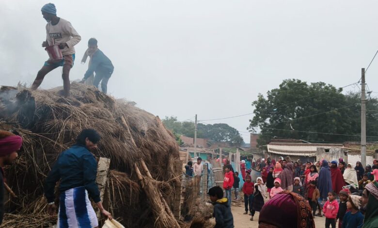 बिशनपुर गांव में पुआल टाल में लगी आग, गरीब परिवार को भारी नुकसान