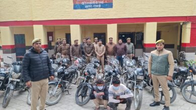 दो वाहन चोर 22 बाइकों, फर्जी नम्बर प्लेटों व उपकरणों के साथ गिरफ्तार