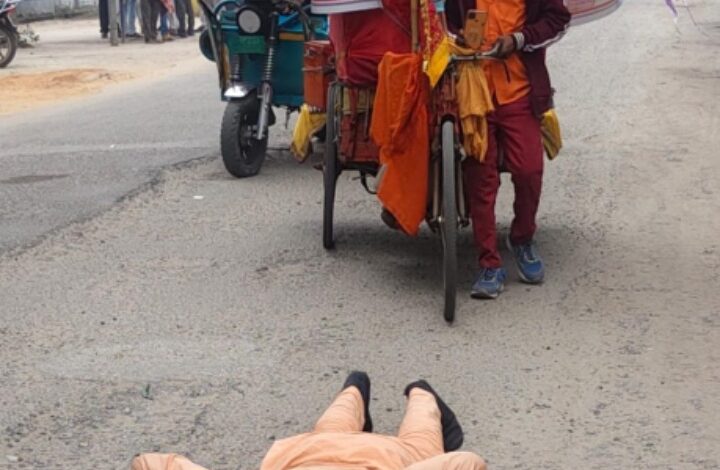 दंडवत यात्रा पर बाबा खाटू श्याम के दर्शन को निकले महाराज, रोजाना 15-16 किलोमीटर की दूरी कर रहे तय।