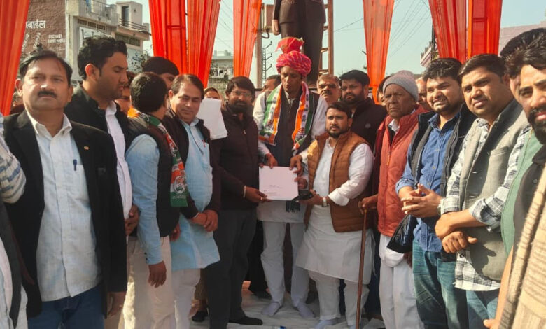 खैरथल । महात्मां गांधी राष्ट्रीय ग्रामीण रोजगार गारंटी अधिनियम (मनरेगा) योजना का नाम बदलने और उसके लाभों में कटौती किए जाने के विरोध में रविवार को कांग्रेस पार्टी की ओर से खैरथल जिला मुख्यालय पर जोरदार धरना-प्रदर्शन किया गया। यह धरना जिला अध्यक्ष बलराम यादव के नेतृत्व में अंबेडकर सर्किल पर आयोजित हुआ, जिसमें कांग्रेस के पदाधिकारी, कार्यकर्ता और बड़ी संख्या में ग्रामीण क्षेत्रों से आए मजदूर शामिल हुए। प्रदर्शन के दौरान कांग्रेस कार्यकर्ताओं ने भाजपा सरकार के खिलाफ जमकर नारेबाजी की और मनरेगा योजना को कमजोर करने के फैसले को तुरंत वापस लेने की मांग की।