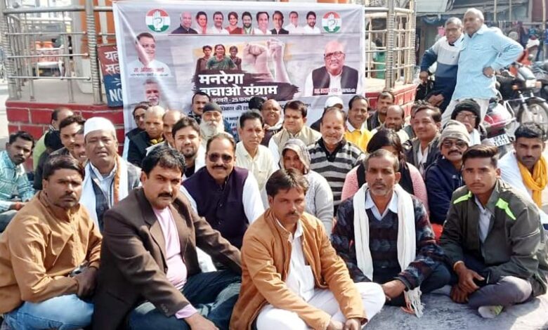 ललितपुर। जिला कांग्रेस कमेटी के तत्वाधान में मनरेगा बचाओ संग्राम के तहत जिलाध्यक्ष डा.दायराम रजक व जिला मनरेगा प्रभारी जसपाल सिंह के मुख्य आतिथ्य में घण्टाघर मैदान में सांकेतिक उपवास किया गया। जिलाध्यक्ष डा.दयाराम रजक ने कहा कि प्रदेश कांग्रेस कमेटी के मनरेगा बचाओ संग्राम आंदोलन के मुख्य बिंदु इस तरह साफ-साफ रखे जा सकते है। हर जरूरतमंद परिवार को मनरेगा के तहत पूरा काम मिले, काम बंद करना बंद हो। जवाबदेही की गारंटी, काम न मिलने, भुगतान में देरी और भ्रष्टाचार के लिए अधिकारियों की जवाबदेही तय हो। भुगतान की गारंटी, मजदूरों को समय पर पूरी मजदूरी मिले, महीनों तक भुगतान न लटकाया जाए। मनरेगा में किए गए बदलाव वापस लेने की गारंटी, मजदूर-विरोधी नियम, ऑनलाइन हाजिरी, जॉब कार्ड कटौती जैसे बदलाव रद्द किए जाएँ। मनरेगा की मूल भावना की गारंटी। मनरेगा जिला प्रभारी जसपाल सिंह बंटी ने कहा कि महात्मा गांधी के नाम और गरीबों के रोजगार के अधिकार से कोई छेड़छाड़ नहीं। काम के संवैधानिक अधिकार की पूर्ण गारंटी हर नागरिक को सम्मानजनक जीवन के लिए काम पाने का संवैधानिक अधिकार सुनिश्चित किया जाए। मनरेगा के तहत काम न देना संविधान की भावना के खिलाफ है। धरना प्रदर्शन पर नेहा तिवारी, रामदेवी विश्वकर्मा, जिला उपाध्यक्ष पंकज हुण्डैत, जिला महासचिव शशिकांत दीक्षित, मोहनसिंह चंदेल, हरिबाबू शर्मा, नगराध्यक्ष रामनरेश दुबे, राकेश रजक, खलक सिंह, रफीक अली, कुलदीप पाठक, ब्रजेश शांडिल्य, दीपक रायकवार, राकेश सेन महरौनी, साहबसिंह लोधी, बलवीरसिंह राजपूत, शंकर यादव, श्याम सुंदर सिरोठिया, उदलसिंह चंदेल, अशोक स्वर्णकार, उपदेश सेन, मनोहर पाल, मुन्नालाल, खलक सिंह, भैया लाला आदि मौजूद रहे।