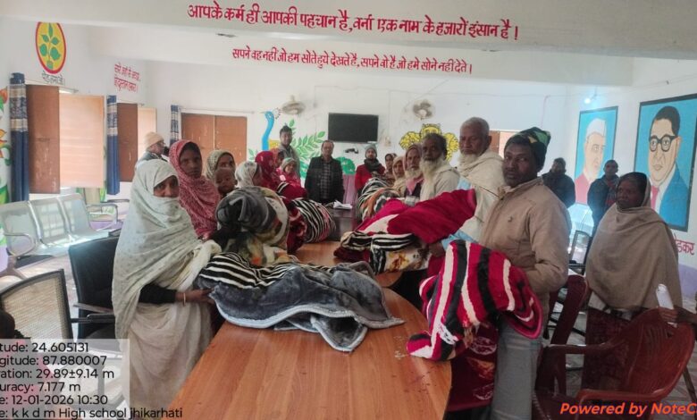 पाकुड़ प्रखण्ड क्षेत्र के झिकरहाटी पश्चिमी पंचायत के मुखिया मु० अबू ताहेर ने बढ़ती ठंड को देखते हुए ग्रामीणों के बीच कंबल का वितरण किया। कंबल पाकर ग्रामीणों के चेहरे पर राहत और खुशी देखने को मिली। इस अवसर पर मुखिया मु० अबू ताहेर ने कहा कि कड़ाके की ठंड में जरूरतमंदों को राहत पहुंचाना उनकी प्राथमिकता है। ग्रामीणों ने इस पहल के लिए मुखिया को दुआएं दीं और आभार प्रकट किया। कंबल वितरण कार्यक्रम के दौरान पंचायत के कई ग्रामीण एवं स्थानीय लोग उपस्थित रहे।