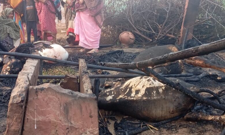 छप्परनुमा घर में लगी भीषण आग, चार गायों की जलकर मौत