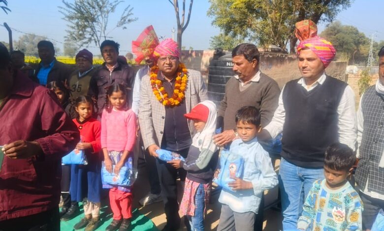 खैरथल : शहर के गुप्ता नर्सिंग होम की ओर से डॉ शैलेंद्र गुप्ता ने राजकीय उच्च माध्यमिक विद्यालय भोजपुर में कक्षा 1 से 5 तक समस्त बच्चों को निःशुल्क गर्म जैकेट वितरित की। इस अवसर पर उपसरपंच श्री मिर्चुमल और SDMC अध्यक्ष श्री बसंत राम डां शैलेंद्र गुप्ता,फतेह मोहम्मद का साफा और माला पहना कर स्वागत किया गया। प्रधानाचार्य शुर श्याम मीणा ने भामाशाह डॉक्टर शैलेंद्र गुप्ता का आभार व्यक्त किया। मंच संचालन मदनमोहन बारेठ ने किया। इस अवसर पर श्री किशनलाल, किशनू, जोगेंद्र सिंह, राधेश्याम सैनी भी उपस्थित रहे। ज्ञात रहे खैरथल का गुप्ता नर्सिंग होम जनकल्याण और सामाजिक कार्यों में वर्षो से महत्वपूर्ण भूमिका निभाता आ रहा हैं।