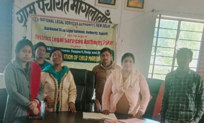 पाकुड़। झालसा रांची के निर्देशानुसार जिला विधिक सेवा प्राधिकार, पाकुड़ के तत्वावधान में पाकुड़िया प्रखंड के मोगलाबांध पंचायत भवन में विधिक जागरूकता कार्यक्रम आयोजित किया गया। कार्यक्रम में नालसा की डॉन, आशा, संवाद एवं जागृति योजनाओं की जानकारी ग्रामीणों को दी गई। पारा लीगल वॉलिंटियर्स द्वारा नशा मुक्ति, नशीली दवाओं के दुष्परिणाम, बाल विवाह रोकथाम एवं उससे जुड़े कानूनी प्रावधानों पर जागरूक किया गया। साथ ही जिला विधिक सेवा प्राधिकार से मिलने वाली मुफ्त कानूनी सहायता एवं न्याय तक पहुंच के विषय में जानकारी दी गई। शिविर में पंचायत प्रतिनिधि एवं बड़ी संख्या में ग्रामीण उपस्थित रहे।
