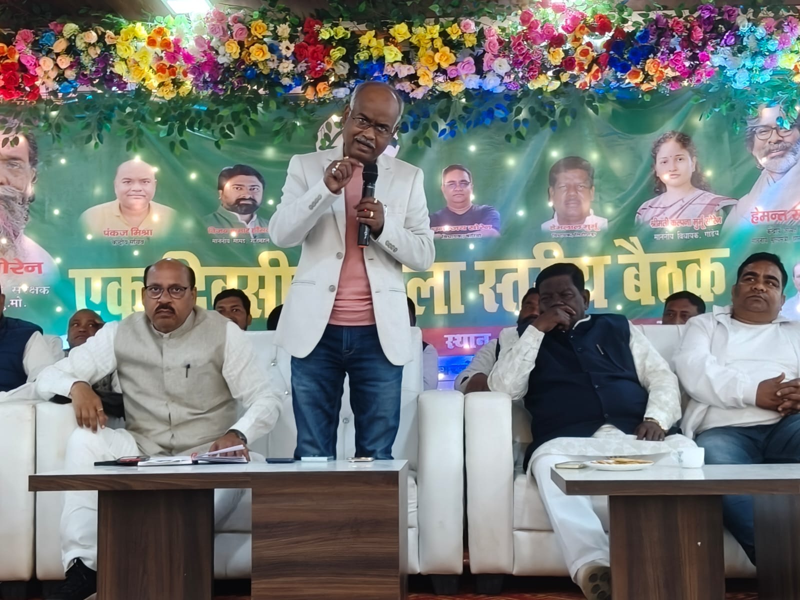 गोड्डा। सरकंडा के पथरा रोड स्थित विवाह भवन में झारखंड मुक्ति मोर्चा के एक दिवसीय जिला स्तरीय बैठक का आयोजन किया गया। बैठक की अध्यक्षता जिला अध्यक्ष प्रेमनंदन कुमार ने किया। उन्होंने बताया कि संताल परगना कमिश्नरी स्तरीय दिनांक 02 फरवरी 2026 को दुमका के गांधी मैदान में आयोजित होने वाली 47 वें झारखंड स्थापना दिवस की तैयारी हेतु कार्यकर्ताओं को दिशा निर्देश एवं मार्गदर्शन दिया गया है। बैठक में मुख्य रूप से लिट्टीपाड़ा विधायक सह केंद्रीय प्रवक्ता हेमलाल मुर्मू, केंद्रीय समिति के सचिव पंकज मिश्रा, बोरियो के विधायक धनंजय सोरेन उपस्थित थे। बैठक में बारी-बारी से कार्यक्रम की सफलता हेतु सभी प्रखंडों के प्रखंड अध्यक्ष, केंद्रीय समिति के सदस्यों और वर्ग संगठन, महिला मोर्चा, अल्पसंख्यक मोर्चा, किसान मोर्चा एवं युवा मोर्चा के अध्यक्षों ने अपना विचार रखा। बैठक में केंद्रीय सचिव पंकज मिश्रा ने कहा कि 02 फरवरी को गोड्डा जिला से दुमका बड़ी संख्या में कार्यकर्ता ढोल, नगाड़ा और अपने पारंपरिक हथियार तीर धनुष के साथ जायेंगे और अपने अपने सभी पुराने रिकॉर्ड को स्वय तोड़ेंगे। संसाधन की कोई कमी नहीं होगी। आप कार्यकर्त्ता ही पार्टी की रीढ़ है। आप अपने आप को किसी से कमजोर नहीं समझे। उन्होंने यह भी कहा कि हमारे पार्टी के विधायक, सांसद या उनके प्रतिनिधि महीने में एक दिन गोड्डा जिला में समय देंगे और कार्यकर्ताओं की समस्या को सुनेंगे और उसका समाधान निकलवाएंगे। उन्होंने गोड्डा में जल्द ही भव्य पार्टी कार्यालय बनाने की भी बात रखा। वहीं, लिट्टीपड़ा के विधायक हेमलाल मुर्मू ने पुराने दिनों को याद करते हुए कहा कि हमलोग 02 फरवरी को दुमका पैदल जाया करते थे। आज समय बदला है लोग अब गाड़ी से जाते हैं। बैठक की उपस्थिति से लग रहा है कि गोड्डा जिला अन्य जिला से कार्यकर्ताओं को दुमका ले जाने में आगे रहेगा। उन्होंने इस कार्यक्रम के प्रचार प्रसार हेतु दिवाल लेखन करने, गांव के लोगों के साथ बैठक करने की बात कही। उन्होंने यह भी कहा कि मैं अपने क्षेत्र से समय बचा कर गोड्डा जिला के कार्यकर्ताओं के सुख दुःख को सुनने और उसके समाधान कराने के सप्ताह में तीन दिन गोड्डा में समय दूंगा। बोरियो विधायक धनंजय सोरेन ने कहा कि अब 02 फरवरी को मंच पर कभी गुरुजी दिखाई नहीं देंगे, लेकिन उनका विचार, उनका सोच, उनकी प्रेरणा हमलोगों को मिलता रहेगा। कार्यक्रम में अधिक से अधिक लोगों के ले जाने में अपनी सहभागिता को भी दोहराया। जिला अध्यक्ष प्रो प्रेम नन्दन कुमार ने सभी प्रखंड समिति और नगर समिति सहित आनुषंगिक इकाई की बैठक 28 जनवरी तक अवश्य कर लेने का निर्देश सभी कार्यकर्ताओं को दिया। सभी प्रखंडों के लिए भी कार्यक्रम की सफलता के लिए पर्यवेक्षक भ
