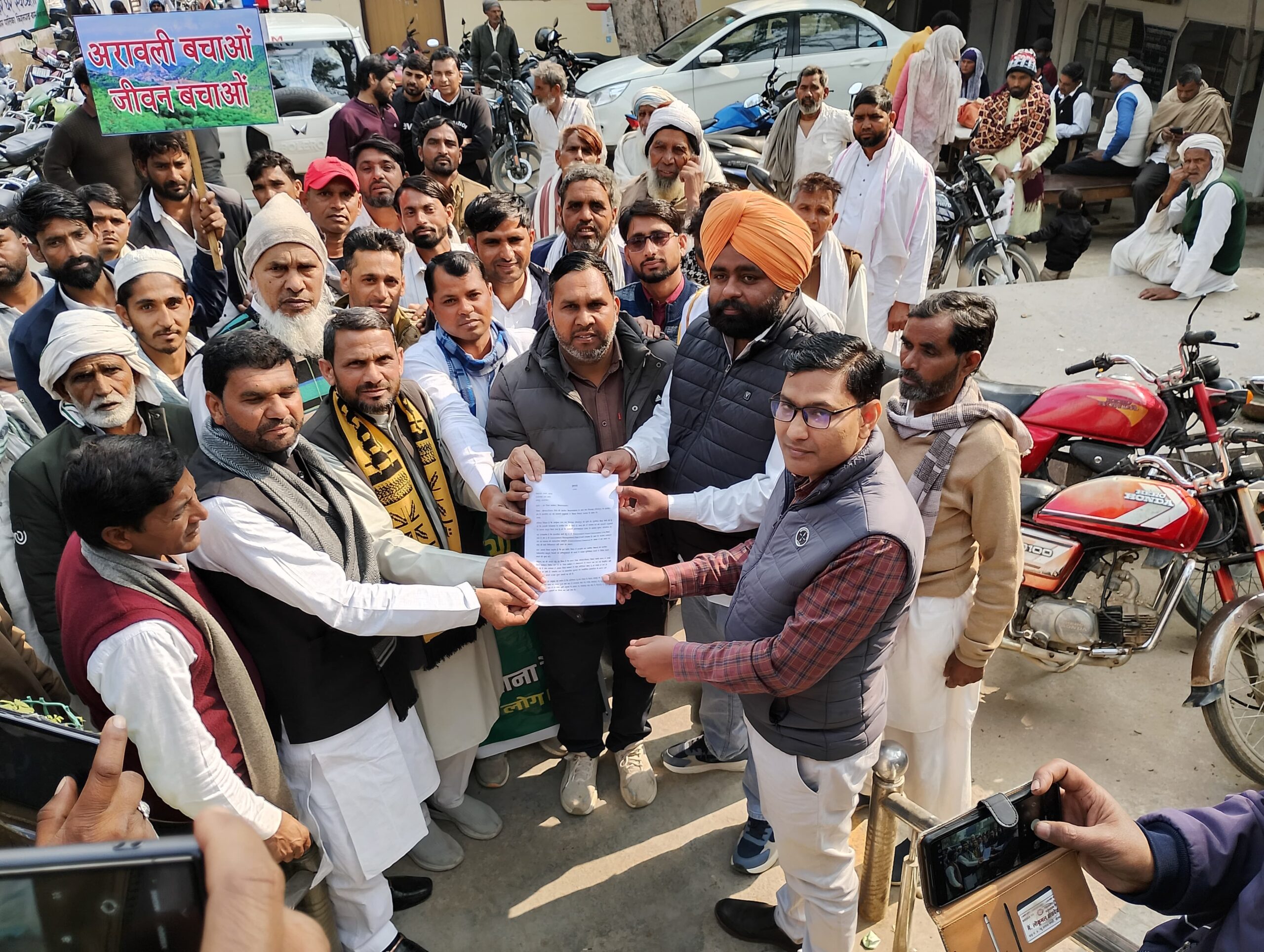 संरक्षित क्षेत्र में सरकारी ट्यूबवेलों के विरोध में महामहिम के नाम एसडीएम को सौंपा ज्ञापन