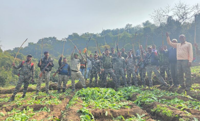 हजारीबाग बुधवार को चौपारण थाना क्षेत्र ग्राम सिकदा में वन विभाग एवं चौपरण पुलिस द्वारा संयुक्त अभियान चलाया गया। अभियान के दौरान लगभग सिकदा के बिभिन इलाका में करीब 70 एकड़ में अवैध रूप से लगी अफीम की खेती को चिन्हित करते हुए मौके पर ही विनष्ट कर दिया गया। यह इलाका बिहार से सटे फल्गु नदी के किनारे अवस्थित है । मौके पर घटनास्थल से निम्नलिखित वस्तुएँ बरामद कर मौके पर ही नष्ट की गईं 1. 15 डिलीवरी पाइप अवैध रूप से अफीम की खेती करने वाले व्यक्तियों के नाम-पता का सत्यापन किया जा रहा है। दोषियों की पहचान के उपरान्त उनके विरुद्ध कांड दर्ज कर कानूनी कार्रवाई की जाएगी। मामले को लेकर अग्रतर कार्रवाई जारी है। और वंही हज़ारीबाग़ पुलिस अधीक्षक ने बताया कि ड्रोन के माध्यम से दुर्गम इलाका को चिन्हित कर विनिष्ट किया जा रहा है । अवैध मादक पदार्थों की खेती एवं तस्करी के विरुद्ध आगे भी इसी प्रकार सख्त कार्रवाई जारी रहेगी।