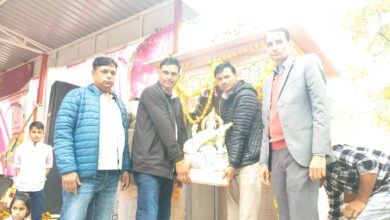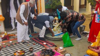 बसंत पंचमी के पर्व पर मां सरस्वती की मूर्ति प्राण प्रतिष्ठा।