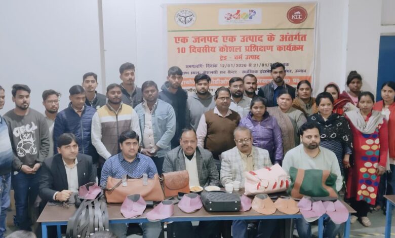 कानपुर : उन्नाव, गुरुवार को उत्तर प्रदेश सरकार की महत्वाकांक्षी योजना एक जिला एक उत्पाद (ओडीओपी) के चर्म उत्पाद ट्रेड के दस दिवसीय प्रशिक्षण कार्यक्रम सफलतापूर्वक समापन हुआ। कार्यक्रम में जिला उद्योग केन्द्र से सहायक प्रबंधक चन्द्र किशोर वर्मा ने सभी प्रशिक्षार्थियो के दस दिनों में निर्मित लेदर के उत्पादों को देखकर उनकी सराहना की। उन्होंने बताया उन्नाव की उपायुक्त उद्योग करुणा राय के दिशा निर्देशों में ओडीओपी तथा विश्वकर्मा योजना का गुणवत्तापूर्ण प्रशिक्षण उन्नाव के अलग अलग केंद्रों में दिया जा रहा है। इसी के अंतर्गत केएलसी इंस्टिट्यूट लेदर के विभिन्न उत्पाद में गुणवत्तापूर्ण प्रशिक्षण दे रहा है। कार्यक्रम में उपस्थित स्वास्तिक इंटरनेशनल के निदेशक कपिल शुक्ला तथा आशुतोष शुक्ला ने सभी प्रशिक्षार्थियों को लेदर क्षेत्र में रोजगार तथा स्वरोजगार के अवसरों से अवगत कराया। उन्होंने बताया कि आप इस योजना की टूलकिट से घरों पर अपना कार्य आरम्भ करके जॉब वर्क अथवा ऑनलाइन पोर्टल पर अपने लेदर के उत्पादों को बेच सकते है। कार्यक्रम में उपस्थित कानपुर उन्नाव लेदर क्लस्टर(केएलसी) इंस्टीट्यूट के मुख्य कार्यकारी अधिकारी इमरान सिद्दकी ने ओडीओपी प्रशिक्षण कार्यक्रम के समापन समारोह में उपस्थित सभी अतिथियों का आभार जताया। उन्होंने सरकार द्वारा चलायी जा रही योजना,बैंक द्वारा मिल रहे ब्याज मुक्त लोन आदि से सभी जुड़कर आगे बढ़ने की सलाह दी। अन्त में केएलसी इंस्टीट्यूट से शिशिर अवस्थी ने छात्रों द्वारा प्रशिक्षण कार्यक्रम में बनाये गये लेदर बैग,पर्स,बेल्ट,जूते के अपर आदि उत्पादों की तारीफ करते हुए सभी 50 प्रशिक्षार्थियों के उज्ज्वल भविष्य की कामना की। इसके पश्चात् सभी दो बैचों के प्रशिक्षार्थियों का लेदर सेक्टर स्किल काउंसिल के एग्जामनर द्वारा आरपीएल असेसमेंट कराया गया। इस मौके पर प्रमुख रूप से विकास दीक्षित,रितिक सिंह,अतुल,अभिषेक,विनीत प्रजापति आदि लोग उपस्थित रहे।