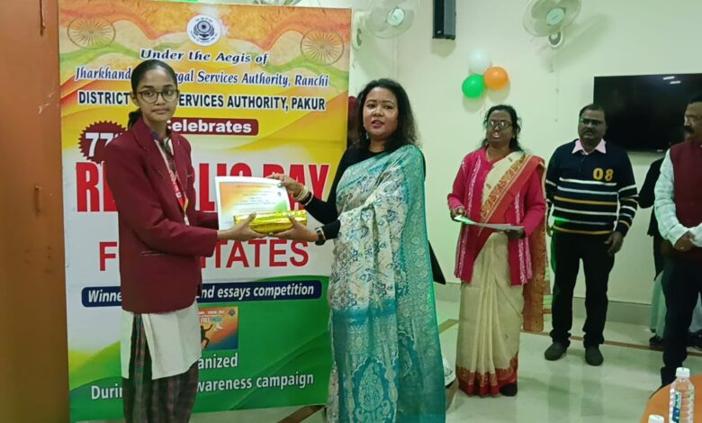 गणतंत्र दिवस पर पाकुड़ व्यवहार न्यायालय में नालसा डॉन योजना के तहत छात्राओं का सम्मान