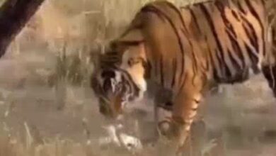 बाघ ने बगुले से निभाई मोहब्बत अठखेली कर छोड़ दिया जिंदा