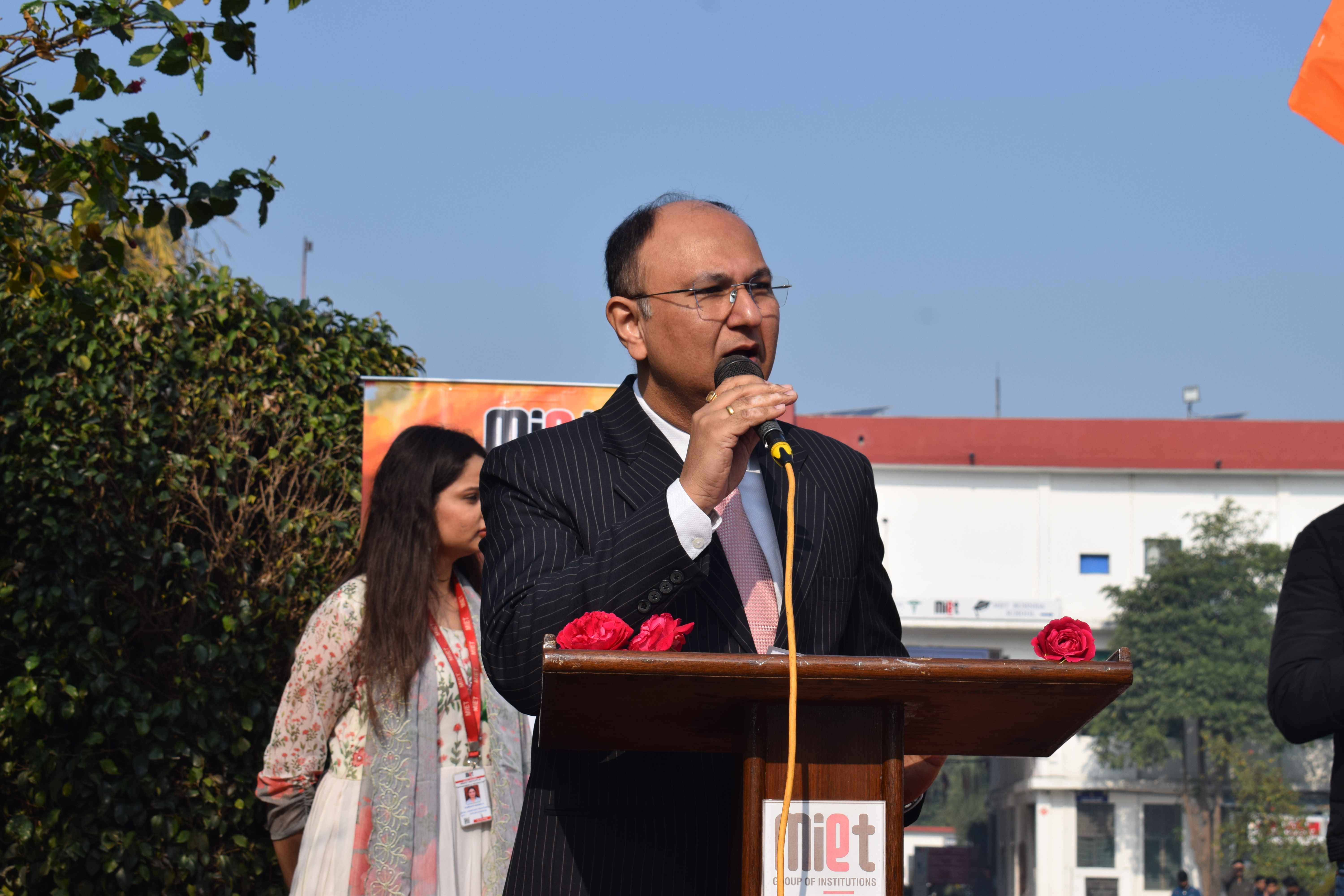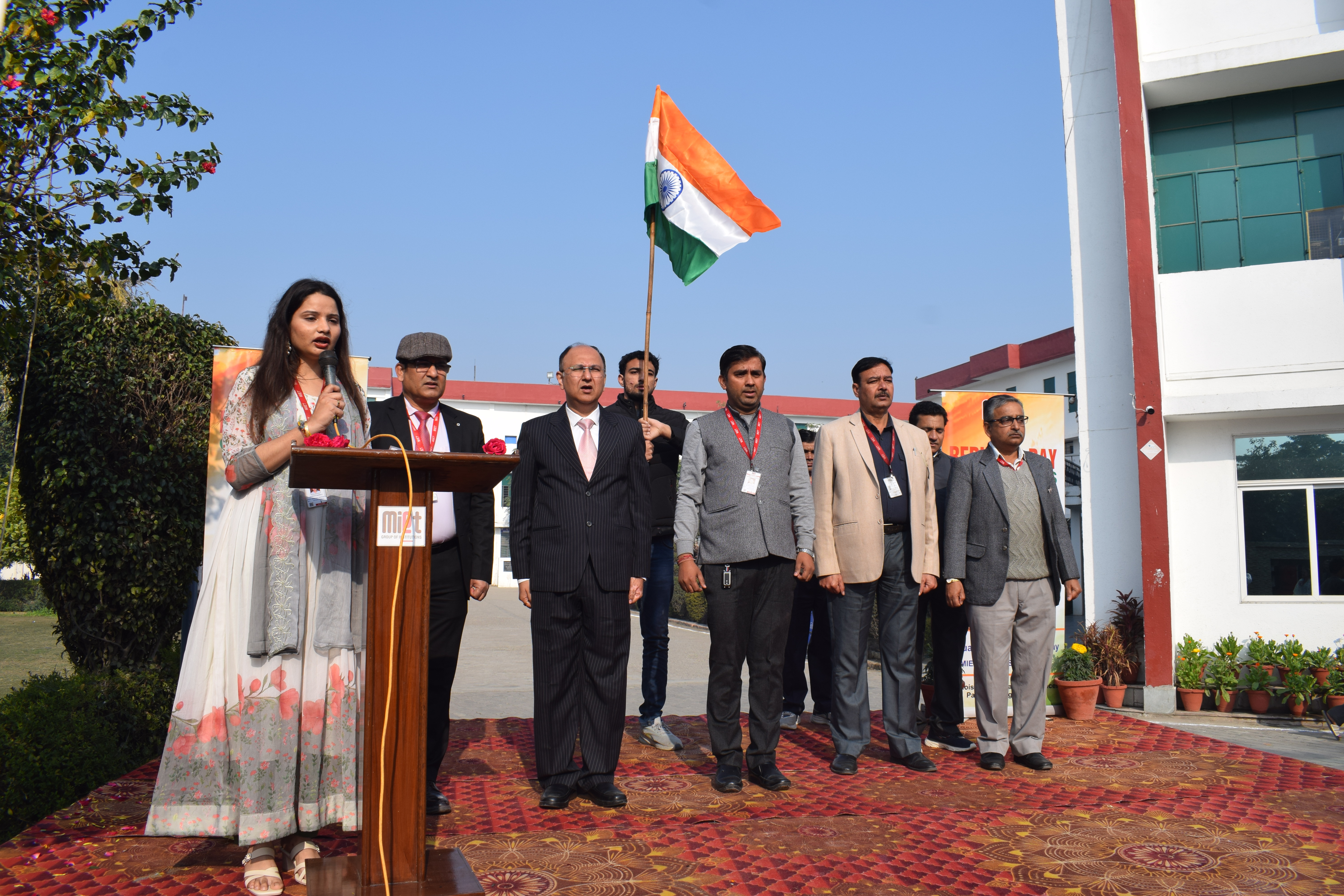 मेरठ। मेरठ इंस्टीट्यूट ऑफ इंजीनियरिंग एंड टेक्नोलॉजी (एमआईईटी) में 77वें गणतंत्र दिवस के अवसर पर राष्ट्रीय ध्वजारोहण समारोह गरिमामय वातावरण में संपन्न हुआ। इस अवसर पर संस्थान के वाइस चेयरमैन गौरव अग्रवाल एवं कैंपस निदेशक डॉ. संजय कुमार सिंह ने संयुक्त रूप से तिरंगा फहराया। राष्ट्रगान के पश्चात “भारत माता की जय” के उद्घोष से पूरा परिसर देशभक्ति की भावना से गूंज उठा।
