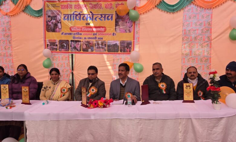 बरेली : बहेड़ी स्थित राजकीय हाइस्कूल सियाठेरी, बहेड़ी में ‘वार्षिक उत्सव एवं प्रतिभा सम्मान समारोह’ का आयोजन किया गया। कार्यक्रम का शुभारंभ मुख्य अतिथि मंडलीय उप शिक्षा निदेशक एवं माध्यमिक शिक्षा परिषद बरेली के अपर सचिव मुन्ने अली द्वारा दीप प्रज्वलन और सरस्वती वंदना के साथ हुआ। प्रतिभा सम्मान: गत 5 वर्षों में उत्कृष्ट प्रदर्शन करने वाले मेधावी छात्रों/ छात्राओं, खेलकूद में अग्रणी खिलाड़ियों और अनुशासन में अव्वल रहने वाले विद्यार्थियों को प्रशस्ति पत्र एवं स्मृति चिह्न देकर सम्मानित किया गया। संबोधन: विद्यालय के प्रधानाचार्य राकेश माथुर ने विद्यालय की वार्षिक प्रगति रिपोर्ट प्रस्तुत की और छात्रों के सर्वांगीण विकास पर बल दिया।