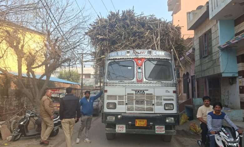 ओवरलोड गन्ना ट्रकों ने खंद्रावली रोड को बनाया जाम का अड्डा