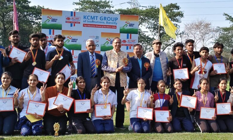 बरेली : रिठौरा स्थित खंडेलवाल कॉलेज में उन्नीसवीं वार्षिक एथलेटिक मीट प्रतियोगिता का आयोजन किया गया प्रतियोगिता के शुभारंभ में आए कॉलेज के मैनेजिंग डायरेक्टर डॉ विनय खंडेलवाल ,महानिदेशक डॉ.अमरेश कुमार, प्राचार्य डॉक्टर आर.के सिंह व प्रशासनिक अधिकारी राकेश चतुर्वेदी ने मार्च पास्ट में सभी डिपार्टमेंट के खिलाड़ियों को सलामी देकर प्रतियोगिता शुरू हुई।