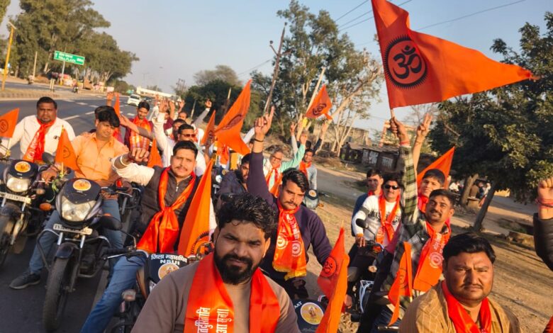 भुसावर : उपखण्ड क्षेत्र के गांव छौंकरवाड़ा कलां में सोमवार को सुबह 10:00 बजे विराट हिंदू सम्मेलन का आयोजन होगा। जिसकी तैयारी को लेकर रविवार को गांव छोंकरवाड़ा कलां में मीटिंग का आयोजन किया गया एवं शाम को बाइक रैली निकाली गई। बाइक रैली छौंकरवाड़ा कलां से प्रारंभ होकर आसपास के 07 गाँवों से होकर के गुजरी। इस रैली में 30 बाइक सवारों ने झंडा, बैनर व पताका के साथ सम्मिलित हुए। रैली के माध्यम से सर्व हिंदू समाज से अधिक संख्या में विराट हिंदू सम्मेलन में आने का आह्वान किया।