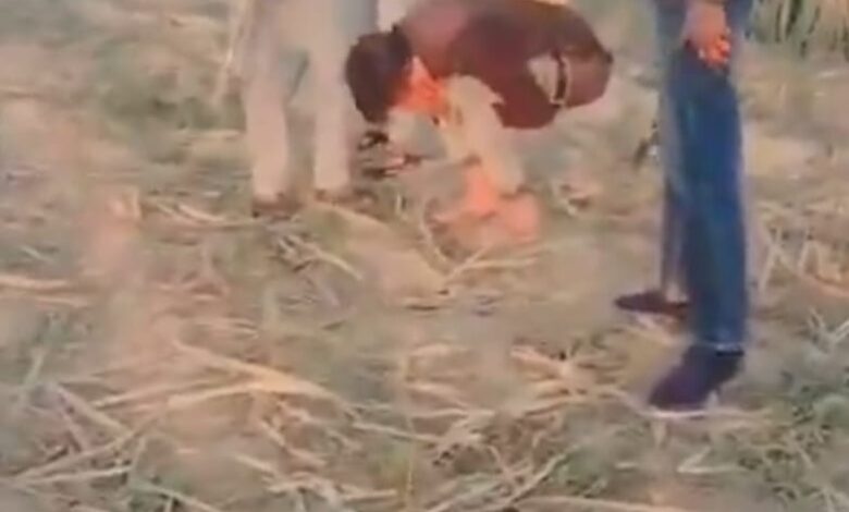 हापुड (यूपी)- युवकों ने मोबाईल चोरी के शक में एक युवक को दी तालिबानी सजा । युवक को जंगल में उठाकर ले गए गुंडे । तीन युवकों ने एक युवक को लाठी डंडों से बेरहमी से पीटा। युवक को मुर्गा बनाकर उसके ऊपर ईट रखी गई । मुर्गा बनाकर युवकों ने युवक को लाठी से पीटा । युवक को दी गई खौफनाक सजा का वीडियो सोशल मीडिया में वायरल । हापुड नगर कोतवाली क्षेत्र के मोहल्ला आदर्श नगर का बताया जा रहा है पीड़ित युवक आशीष ।