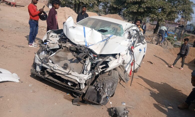 साहिबगंज जिरवाबाड़ी थाना क्षेत्र के साक्षरता मोड़ के समीप मंगलवार की देर रात लगभग11बजे सफेद रंग की मारूति डिजायर कार बीआर10ए डब्ल्यू9582सड़क की साइड में खड़े हाइवा से जा टकराई।जिससे कार के परखच्चे उड़ गए,इस हादसे में बिहार के सुल्तानगंज निवासी चालक राजकुमार यादव उर्फ राकी की दर्दनाक मौत हो गई। वहीं कार में बैठे सुल्तानगंज निवासी किशोर चौधरी व उसका छह वर्षीय पुत्र राजवीर चौधरी घायल हो गए। सूचना मिलते ही वहां पहुंची पुलिस ने घायलों को इलाज व मृतक चालक के शव को पोस्टमॉर्टम के लिए सदर अस्पताल भेज दिया। मिली जानकारी के अनुसार किशोर चौधरी जिरवाबाड़ी थाना क्षेत्र के लोहंडा स्थित अशोक चौधरी की बेटी की शादी समारोह में शामिल होने आए थे।बताया जाता है कि बारात द्वार पर आयी हुई थी।घर वालों ने किशोर चौधरी को कुछ लाने के लिए साक्षरता मोड़ भेजा था।किशोर चौधरी अपने पुत्र राजवीर व चालक राजकुमार के साथ घर से निकले थे,रास्ते में कार सड़क किनारे खड़े हाइवा से जा टकरायी,हादसे में राजकुमार यादव की मौत हो गई।राजकुमार पांच दिनों की बुकिंग के लिए साहिबगंज आया था।दुर्घटना के बाद शादी की खुशी गम में बदल गयी।पुलिस मामले की छानबीन कर रही है।