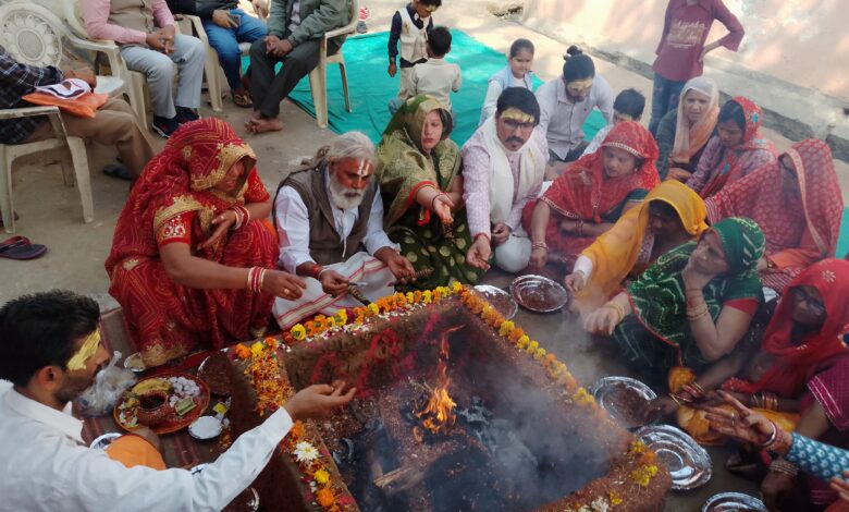 यजमानों ने दी हवन यज्ञ में आहुतियां , विश्व शांति एवं मानव कल्याण की कामना