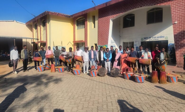 कल्याण विभाग द्वारा चुरचू प्रखण्ड के दस अनुसूचित जनजाति बहुल गावो में वाद्य यंत्रों का वितरण।