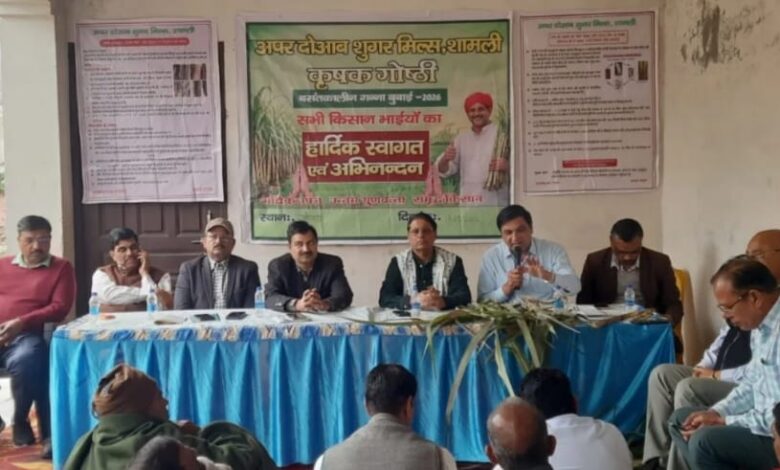 कांधला : क्षेत्र के गांव पंजोखरा में गन्ना किसानों की आय बढ़ाने और फसल को कीट-रोगों से सुरक्षित रखने के उद्देश्य से एक भव्य किसान गोष्ठी का आयोजन किया गया। कार्यक्रम में करनाल गन्ना संस्थान के पूर्व निदेशक डॉ. एस.के. पांडे तथा जिला गन्ना अधिकारी शामली मुख्य अतिथि के रूप में उपस्थित रहे। गोष्ठी में करीब ढाई सौ प्रगतिशील किसानों ने भाग लेकर आधुनिक खेती की बारीकियां सीखी।