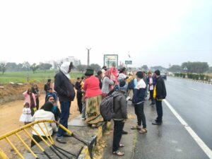 बावड़ी हाईवे पर व्यक्ति को बचाने के चक्कर में रोडवेज बस डिवाइडर फांद कर सर्विस रोड़ में जा पहुंची