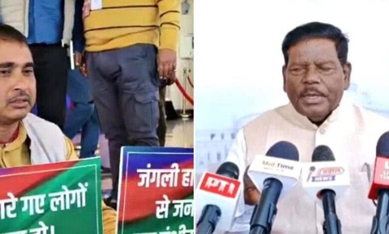 Protest in Jharkhand Assembly premises, AJSU demands compensation for elephant attacks, JMM opposes delimitation
