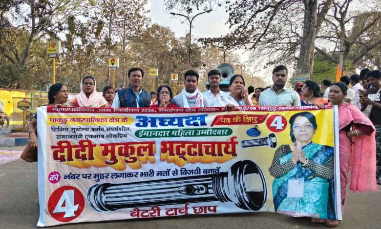 मुकुल भट्टाचार्य के समर्थन में रैली, पाकुड़ पार्क से स्वामी विवेकानंद चौक तक भारी सहभागिता