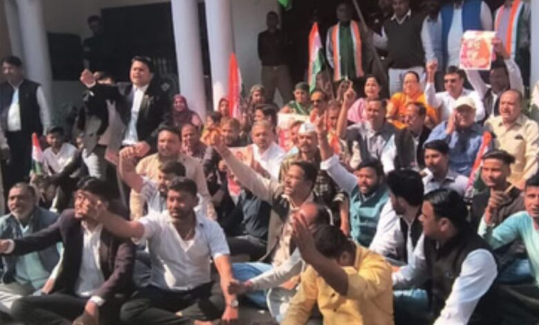 शंकराचार्य के खिलाफ प्राथमिकी दर्ज होने पर कांग्रेस का प्रदर्शन