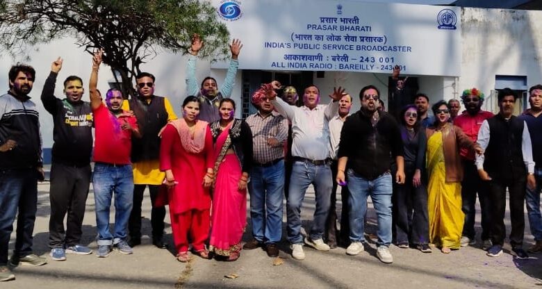 बरेली : आकाशवाणी बरेली की हवाएं होली के रंग से सराबोर हो उठी हैं। कार्यक्रम प्रमुख मिथिलेश श्रीवास्तव के मार्गदर्शन में होरी की थाप पर जानकारी, जागरूकता और मनोरंजन की ठंडाई कानों में मिसरी सी घोल रही है। कार्यक्रम अधिशासी गौरव सक्सेना, अपर श्रेणी लिपिक संदेश सक्सेना के साथ मिलकर आकाशवाणी से जुड़े कलाकारों ने अपने गीत संगीत से समां बांध दिया। होली की इस महफिल में प्रसिद्ध लोकगायक दीपक राणा, शकील अहमद और क्षमा सक्सेना ने अपने लोक धुनों पर सबको थिरकने पर मजबूर कर दिया। इस अवसर पर देवेन्द्र रावत, अमृता सिंह, शिप्रा मिश्रा, पूनम, क्षमा सक्सेना, रोचना मिश्रा, नीतू त्रिपाठी, मोहम्मद परवेज, प्रदीप मिश्रा, बृजेश तिवारी, कृष्ण पाल मौर्य, राकेश कुमार शर्मा, कन्हैया, डॉ.रविंद्र कुमार, सुरेंद्र पाल, हरद्वारी लाल वर्मा, शीशपाल,मोहम्मद परवेज, हरीश कुमार, सत्यपाल सिंह, अभिनव पाठक आदि ने उपस्थित होकर होली पर्व का आगाज़ किया और एक दूसरे के साथ साथ सभी श्रोताओं को भी होली की शुभकामनाएं दीं। आकाशवाणी बरेली के स्थानीय प्रशासनिक प्रमुख अजय अवस्थी ने समारोह में आने के लिए सबका आभार जताया।