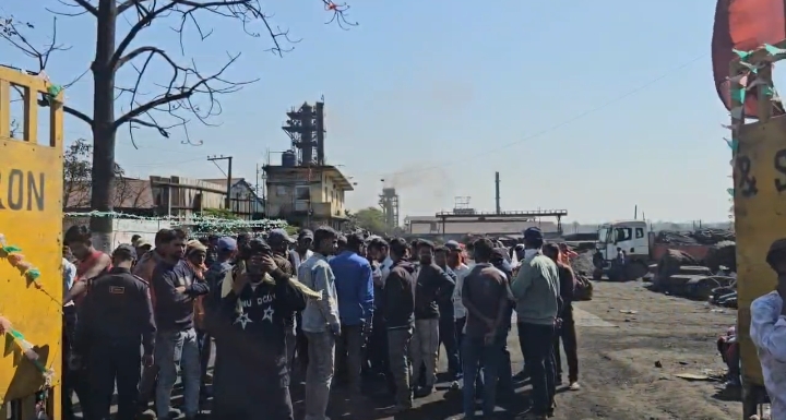 नरसिम्हा आयरन एंड स्टील मैं मजदूर की मौत समझौता के बाद धरने से उठे।