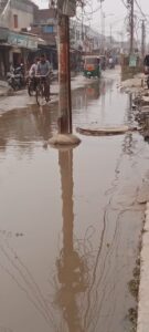 स्थानीय दुकानदारों और निवासियों का कहना है कि जल निकासी की उचित व्यवस्था न होने के कारण सड़क पर गंदा पानी जमा रहता है, जिससे दुर्गंध फैल रही है और बीमारियों का खतरा भी बढ़ रहा है।