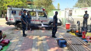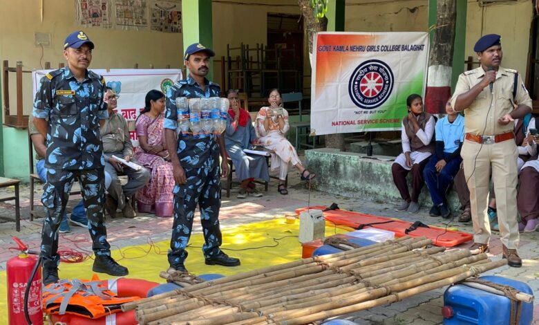 बालाघाट(म0प्र0) : कलेक्टर  मृणाल मीना के निर्देशन एवं डिस्ट्रिक्ट कमांडेंट श्रीमती रजनी खटीक के मार्गदर्शन में कमला नेहरू कन्या महाविद्यालय बालाघाट में एसडीआरएफ की टीम द्वारा आपदा प्रबंधन जागरूकता अभियान आयोजित किया गया। कार्यक्रम में छात्राओं को बाढ़, भूकंप, वज्रपात, आगजनी, लू, सर्पदंश आदि आपदाओं से बचाव के बारे में विस्तृत जानकारी दी गई।