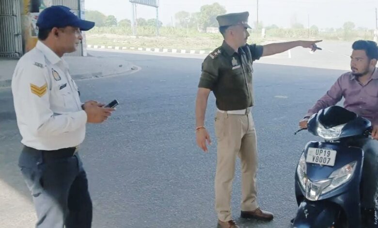 सहायक यातायात प्रभारी लाल विराट भारद्वाज के नेतृत्व में चेकिंग, दूर से पुलिस देखकर कई वाहन चालकों ने बदला रास्ता