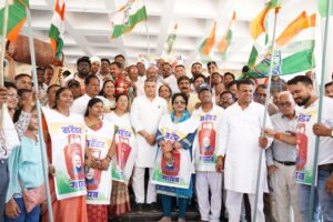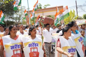 महंगाई, गैस संकट और ट्रेंचिंग ग्राउंड घोटाले के विरोध में सड़क पर उतरे कांग्रेस कार्यकर्ता