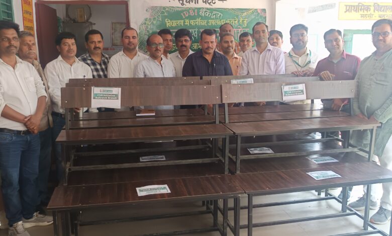 प्रथमिक विद्यालय महसी के बच्चों के लिए बैंक ने की डेस्क-बेंच की व्यवस्था