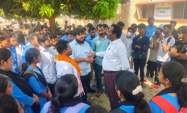 केकेएम कॉलेज में अभाविप का प्रदर्शन, छात्रों की मांगों पर प्रशासन ने दिया आश्वासन