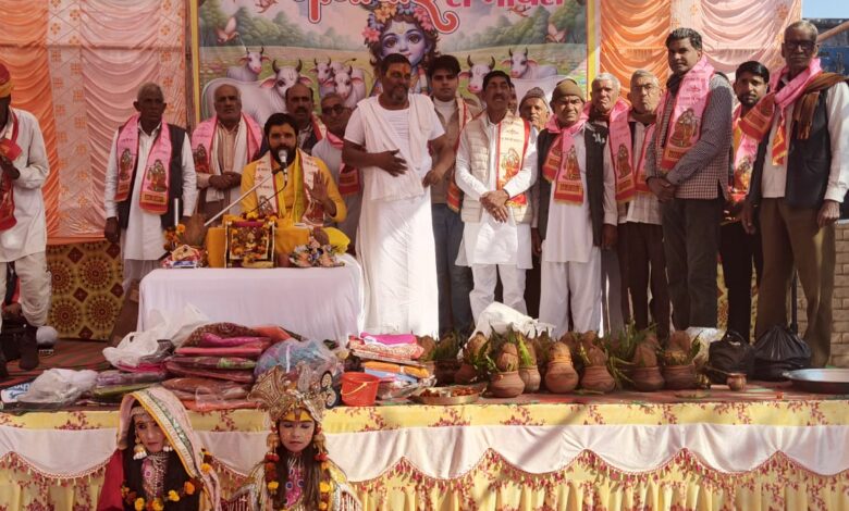 चंवरा। क्षेत्र की प्रसिद्ध श्री कृष्ण गौशाला एवं नंदीशाला संस्थान चंवरा हीरवाना में बामलास धाम के महंत लक्ष्मण दास महाराज के सानिध्य में चल रही नानी बाई रो मायरो कथा में कथावाचक विपुल शास्त्री ने कहा कि भगवान पर सर्वस्व न्योछावर करने पर परमात्मा अपने भक्त की लाज अवश्य बचाते हैं। जिस प्रकार भक्त नरसी की सच्ची भक्ति से प्रसन्न होकर भगवान स्वयं अंजार नगर पहुंचकर नानी बाई के 56 करोड़ का मायरा भरा। इसलिए हमेशा भगवान का स्मरण करते रहे। कथा के समापन पर अतिथियों और दानदाताओं का सम्मान किया गया। मकर संक्रांति पर गौशाला में सुबह से देर शाम दानदाताओं का तांता लगा रहा। कथा समापन के दौरान उदयपुरवाटी विधायक भगवाना राम सैनी, गौशाला अध्यक्ष शीशराम खटाणा, कोषाध्यक्ष बनवारीलाल लाल जांगिड़, बुद्धि प्रकाश सोनी, राजेन्द्र दोराता, मनदीप बराला, विक्रम सिंह शेखावत, श्रीचंद बराला, हीरालाल मास्टर, गोपाल सिंह शेखावत, नरेंद्र दाधीच, रोहिताश गुर्जर, महावीर रावत, संदीप गाडिया सहित काफ़ी संख्या में श्रद्धालु मौजूद रहे।
