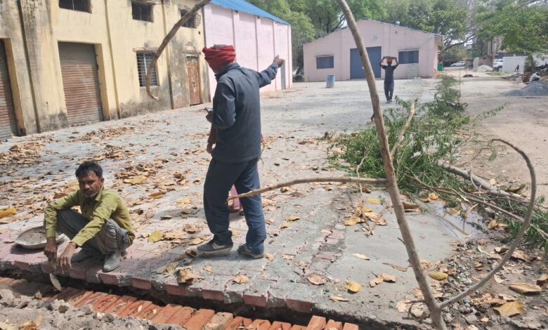 नलकूप कार्यालय परिसर में इंटरलाकिंग बिछाने में मानक ताक पर रखे