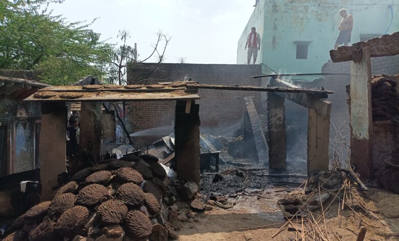 पाटौरनुमा पशुओं के बाड़े में अज्ञात कारणों से लगी आग।