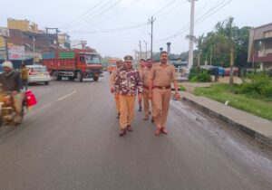 थानाध्यक्ष विकास कुमार ने भारी पुलिस बल के साथ बाजारों में किया पैदल गस्त