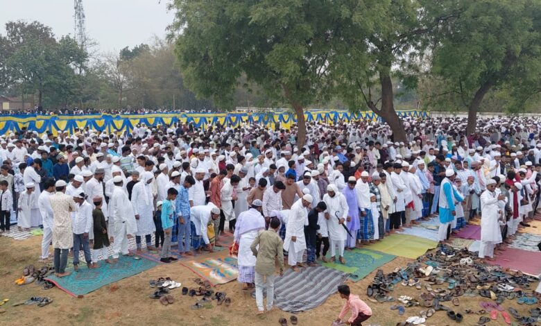 जामताड़ा: जिले के चेंगाईडीह में ईद-उल-फितर का पर्व बड़े ही हर्षोल्लास और अकीदत के साथ मनाया गया। स्थानीय ईदगाह में करीब 25 हजार से अधिक श्रद्धालुओं ने नमाज अदा की। चेंगाईडीह के अलावा सोनबाद, जिलिमटांड, गोखलाडीह और जामताड़ा सहित आसपास के कई क्षेत्रों से लोग नमाज पढ़ने पहुंचे। ईदगाह में नमाज मौलाना अहमद हुसैन मदनी ने अदा कराई। नमाज के बाद देश में अमन-चैन, भाईचारे और खुशहाली की दुआ मांगी गई। इस मौके पर बड़ी संख्या में महिलाओं की भी भागीदारी रही, जिनके लिए पर्दे की विशेष व्यवस्था की गई थी। मौलाना अहसन जमील ने कहा कि सुबह मौसम बारिश वाला था, लेकिन जैसे ही नमाज शुरू हुई, मौसम साफ और खुशनुमा हो गया। उन्होंने अपने गांव के माहौल और व्यवस्था की सराहना भी की। मौलाना तौहीद आलम ने बताया कि हर साल की तरह इस बार भी 25 हजार से अधिक लोग यहां नमाज अदा करने पहुंचे, जो आपसी एकता और भाईचारे का प्रतीक है। वहीं एडवोकेट ऐनुल हक़ ने कहा कि पूरे आयोजन के दौरान माहौल पूरी तरह शांतिपूर्ण रहा और सभी ने मिल-जुलकर ईद की नमाज अदा की। कार्यक्रम के दौरान जामताड़ा पुलिस प्रशासन मुस्तैद रहा। थाना प्रभारी मनोज कुमार महतो सहित पुलिस बल मौके पर मौजूद रहे, जिससे पूरा आयोजन शांतिपूर्ण तरीके से संपन्न हुआ। इस अवसर पर कई गणमान्य लोग भी उपस्थित रहे और सभी ने एक-दूसरे को ईद की मुबारकबाद दी।