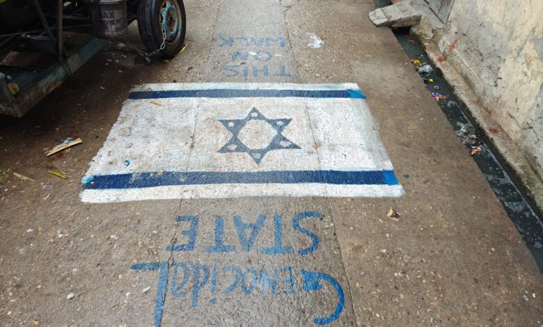 हापुड़ (यूपी) – सिंभावली थाना क्षेत्र के गांव बक्सर में किसी अज्ञात व्यक्ति द्वारा इस्राईल के झंडे का पोस्टर सड़क पर चिपकाने का मामला सामने आया है । घटना गांव बक्सर स्थित जामा मस्जिद के पास की बताई जा रही है, जहां सड़क पर लगाए गए पोस्टर में “नरसंहार (Genocidal state)” जैसे शब्द भी लिखे गए थे।