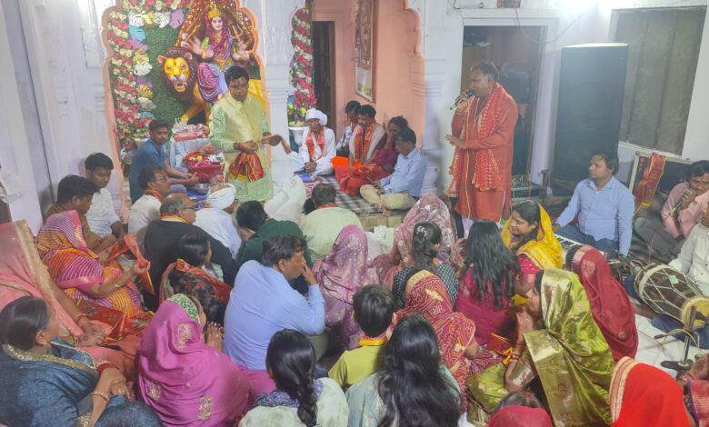 भरतपुर- कस्बा भुसावर के कानूनगो कॉलोनी में नवरात्रों के चलते मां भगवती के रात्रि जागरण का आयोजन किया गया। कार्यक्रम आयोजन कमेटी के सदस्य राहुल अग्रवाल, भारत अग्रवाल एवं सोनू तरबाबू ने जानकारी देते हुए बताया कि कार्यक्रम का शुभारंभ आयोजन समिति के सदस्य मोहनलाल सिंघल, राजेंद्र सिंघल द्वारा माता की ज्योति प्रज्ज्वलित कर किया गया। जागरण का श्री गणेश गायक विकल अवस्थी द्वारा गणपति वंदना, हनुमान वंदना एवं सरस्वती वंदना के साथ किया गया। रात्रि जागरण में महवा से आए कलाकार कैलाश दीवाना ने माता की भेंटे सुना कर सभी को मंत्रमुग्ध कर दिया। वही कलाकार रामकिशन ने माता के लांगुरिया सुना कर भक्तों को नाचने पर मजबूर कर दिया। कार्यक्रम के दौरान मां भगवती के कन्या रूप की झांकी सजाई गई और समाज को बेटियों का जीवन में महत्व बताया गया। रात्रि जागरण का समापन महाआरती के बाद प्रसादी वितरण करते हुए किया गया।