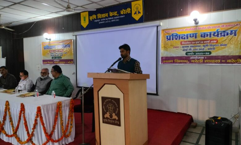 बरेली : कृषि विज्ञान केन्द्र,आई0वी0आर0आई0 मे उ0 प्र0 राज्य औद्यानिकी निर्यात प्रोत्साहन योजान्तर्गत उद्यान विभाग,जनपद बरेली द्वारा दो दिवसीय प्रशिक्षण कार्यक्रम का आयोजन किया गया। कार्यक्रम मे  एस0के0गुप्ता,उप निदेशक उद्यान,बरेली मण्डल,बरेली,डा0 रंजीत सिंह,वैज्ञानिक,कृषि विज्ञान केन्द्र इज्जतनगर बरेली, आलोक मिश्रा,एपीडा(आॅनलाईन माध्यम), डा0आर0एल0सागर,वैज्ञानिक,कृषि विज्ञान केन्द्र, डा0संजय सक्सेना,समाजसेवी, सोमपाल सिंह यादव,ज्येष्ठ कृषि विपणन निरीक्षक,मण्डी समिति,बरेली, जितेन्द्र कुमार,जिला उद्यान अधिकारी,बरेली, अनिल साहनी प्रगतिशील कृषक,गोडसन फार्म,टिगरा, राजेन्द्र प्रसाद गंगवार प्रगतिशील कृषक, नरेश शर्मा,आलू निर्यातक, जनपद बदायूं, कृषक उत्पादक संगठनों के सी0 ई0 ओ0 आदि द्वारा प्रतिभाग किया गया। कार्यक्रम के आरम्भ में जिला उद्यान अधिकारी,बरेली द्वारा उ0 प्र0 राज्य औद्यानिकी प्रोत्साहन बोर्ड के उसके उद्देश्य एवं कार्यों के बारे मे विस्तार से जानकारी प्रदान की गई। डा0आर0एल0सागर एवं डा0रंजीत सिंह ने गुड एग्रीकल्चर प्रेक्टिस(GAP) के बारे मे तथा एकीकृत कीट प्रबंधन के संबंध में जानकारी प्रदान की गई, राजेन्द्र कुमार गंगवार द्वारा जैविक खेती व मृदा स्वास्थ के बारे मे सुझाव दिये गये। नरेश शर्मा द्वारा आलू की उच्च गुणवत्तायुक्त खेती व निर्यात के बारे मे अपने विचार प्रस्तुत किये गये।श्आलोक मिश्रा द्वारा एपीडा मे पंजीकरण व उसके लाभ के बारे मे जानकारी प्रदान की गई। डा0 संजय सक्सेना द्वारा मिलेटस उत्पादन व उसके होने वाले स्वास्थ पर असर की जानकारी प्रदान की गई। अनिल साहनी द्वारा औद्यानिक फसलों के उन्नतशील उत्पादन व उसके निर्यात के सम्बन्ध मे विस्तृत जानकारी दी गई।  एस के गुप्ता उपनिदेशक उद्यान के द्वारा फलों एवं शाकभाजी के अंतर्गत निर्यात को प्रोत्साहित करने के लिए किस प्रकार मानक अन्तर्गत उच्च गुणवत्ता को कैसे प्राप्त किया जाय तथा रसायन मुक्त उत्पादन को बढ़ाने से सम्बंधित सस्य क्रियाओं की विस्तृत जानकारी प्रदान की गई।